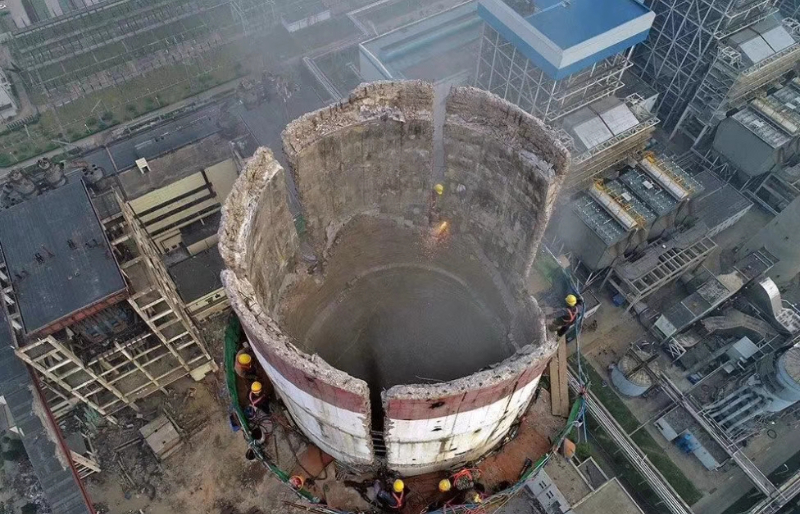 向煙囪的中心部位施加爆炸,以確保煙囪完全坍塌。